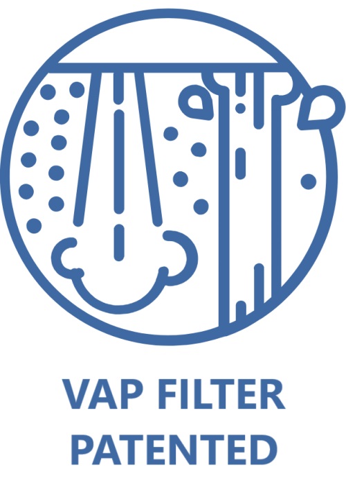 Sistem de purificare a aerului. Datorită utilizării VAP Filter, aparatul poate fi utilizat și ca un purificator de aer. Avantaj: curățarea aerului ajută la reținerea acarienilor și a virușilor responsabili de afecțiuni grave ale căilor respiratorii. |