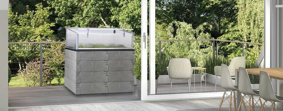 Cu o tava etansa pentru plante ce poate fi folosita pentru uz exterior pe terase si balcoane (inclusiv un furtun de scurgere pentru scurgerea excesului de apa de ploaie), sau in gradina sau in zona interioara acoperita.
