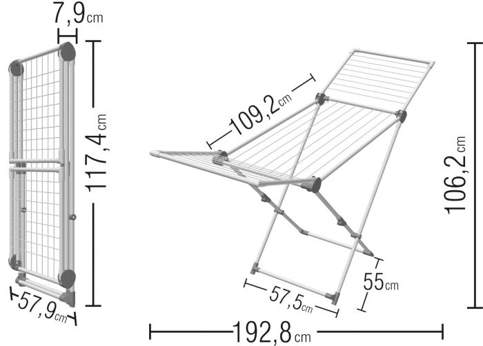 - uscator pliat - 57,9 cm x 7,9 cm x 117,4 cm.