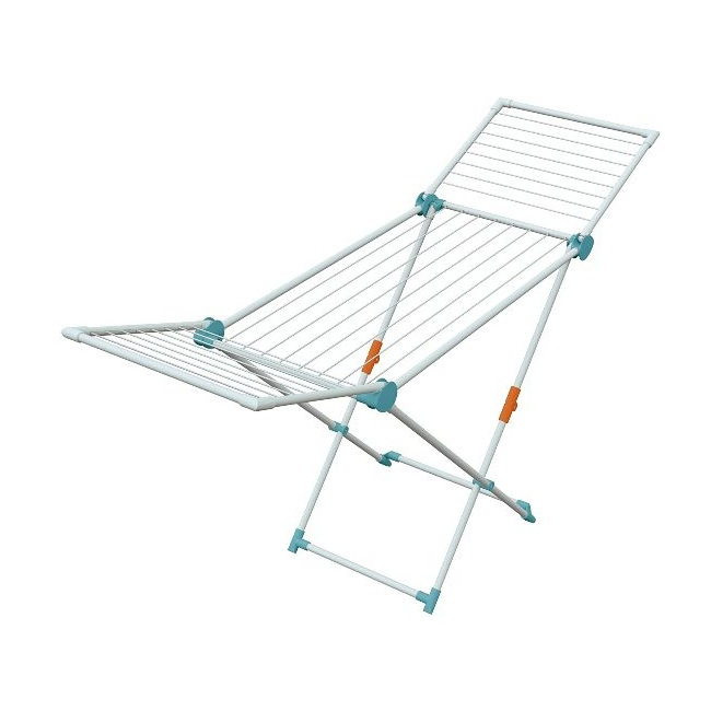 Piesele robuste din otel vopsit si plastic rezistent la intemperii garanteaza o durata de viata indelungata, chiar si in cazul utilizarii intensive. In locul tijelor fragile si predispuse la rugina, Superdry Maxi utilizeaza funii rezistente – o diferenta inteligenta care combina durabilitatea cu confortul. De asemenea, demonstreaza performante reale la pliere si desfasurare: balama Easy-Open click faciliteaza manipularea, ramanand in acelasi timp compacta si economisind spatiu.