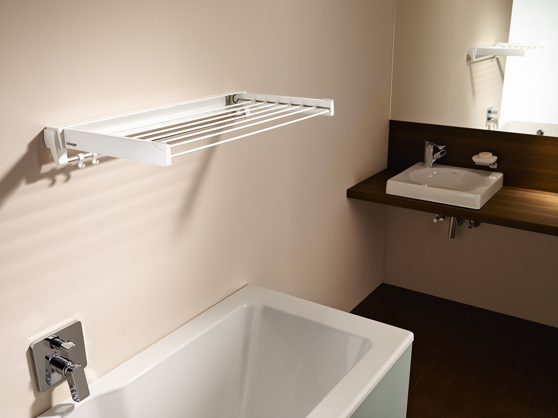 Uscatorul de perete JUWEL Artdry 100 Alb este conceput pentru a atrage atentia prin functionalitatea sa. Fie ca este amplasat in baie sau in spalatorie, acest uscator compact combina designul simplu cu tehnologia inteligenta. Este ideal pentru cantitati mici de rufe. Barele din otel acoperite cu plastic HDPE sunt usor retractabile si se pot ascunde discret cand nu sunt utilizate, in timp ce bara integrata pentru prosoape cu carlige ramane accesibila. Robust si compact, este un organizator inteligent care se potriveste in orice interior.