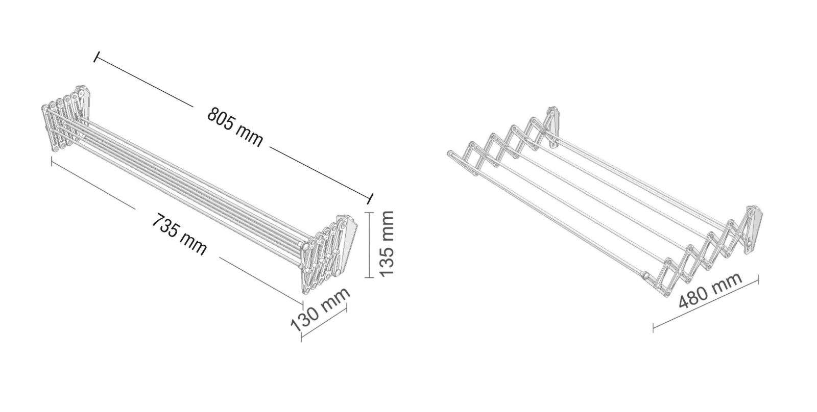 - uscator retractat - 80,5 cm x 13 cm x 13,5 cm.