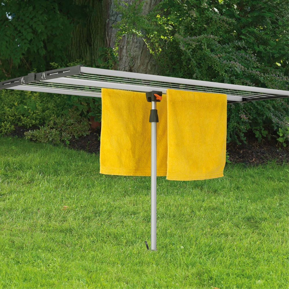 Potrivit pentru utilizare in interior cat si in exterior. Designul sau sofisticat se reflectă si in discretia sa: cand este pliat, ocupă doar cativa centimetri, ascunde funiile, protejandu-le de murdarie si praf. Datorita inaltimii si suportului reglabil, acesta se miscă literalmente in toate directiile, atat in interior, cat si in exterior, facilitand enorm agatarea rufelor. Fabricat din aluminiu si piese din plastic rezistente la intemperii asigura o capacitate de uscare de aproximativ 19 de metri.
